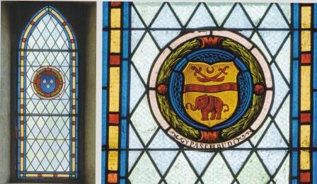Une tête très effacée, couronnée d’un nimbe crucifère orne le sommet de l’embrasement de la fenêtre axiale.